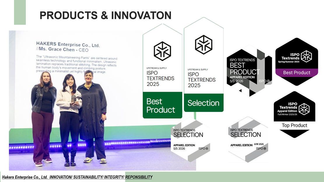 2025 榮獲ISPO TEXTRENDS AWARD三度得獎,BEST PRODUCT、SELECTION等多個獎項